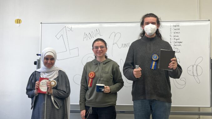 BROOKLYN COLLEGE– The Interns of the English Majors’ Counseling Office, also known as the Riverrun Club, challenged students to spell tricky words for special prizes at the first annual Riverrun Spelling Bee on Nov. 20.