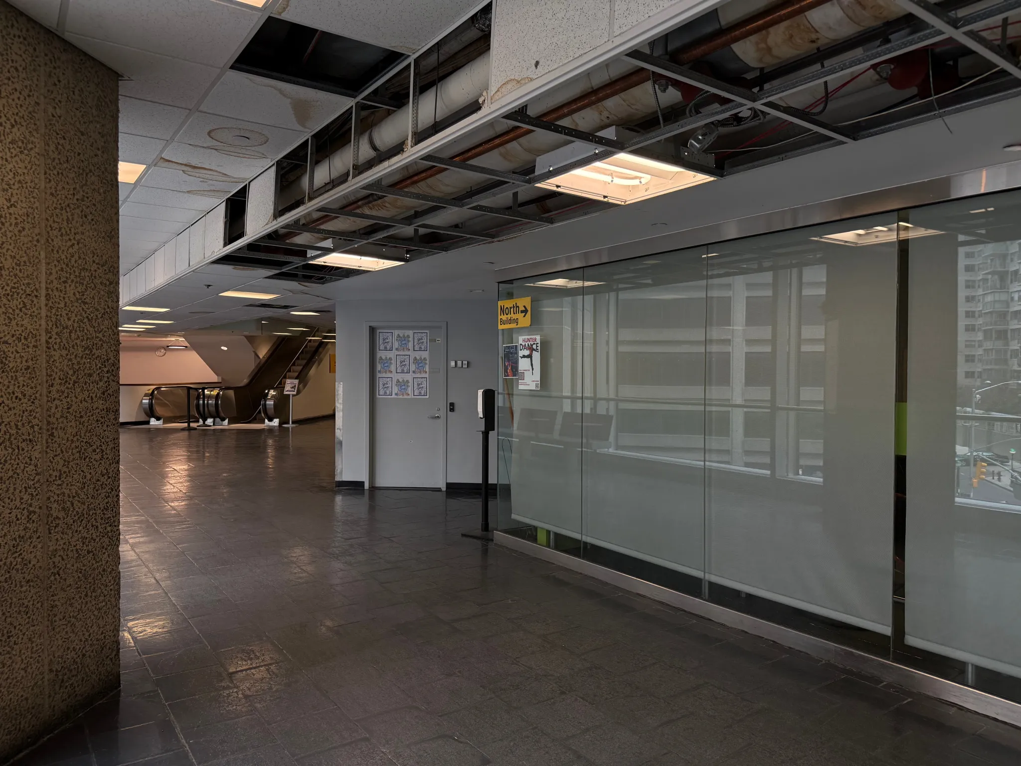 HUNTER COLLEGE— On a Monday afternoon last month, the jaws of Hunter students and faculty dropped as a brown, soggy ceiling panel crashed to the ground on the third-floor sky bridge.