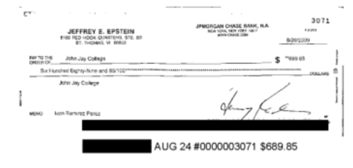 JOHN JAY COLLEGE— The Justice Department’s release of 3.5 million Epstein-related emails contains a couple of surprises: the name of a CUNY-linked immigration attorney appears more than 1,000 times in the trove as does a check made out by Epstein to John Jay College.